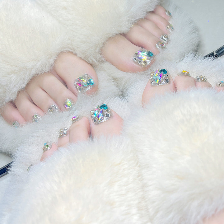Colorful Rhinestone-Studded Toe Nails Patch 24pcs/Set