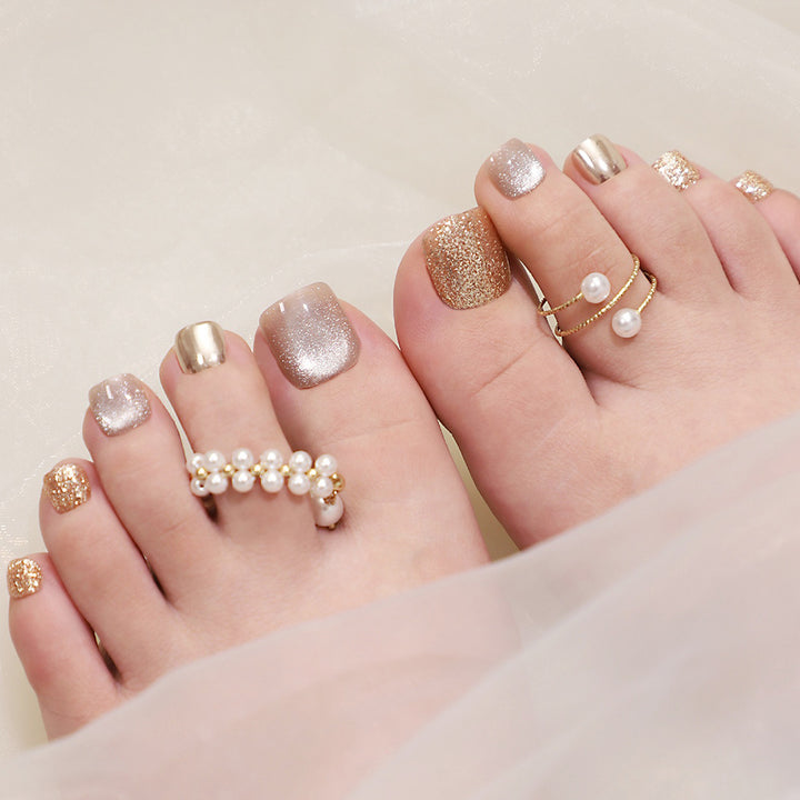 No.119 Coffee-colored Mirror Champagne Glitter Toenails 24pcs/Set