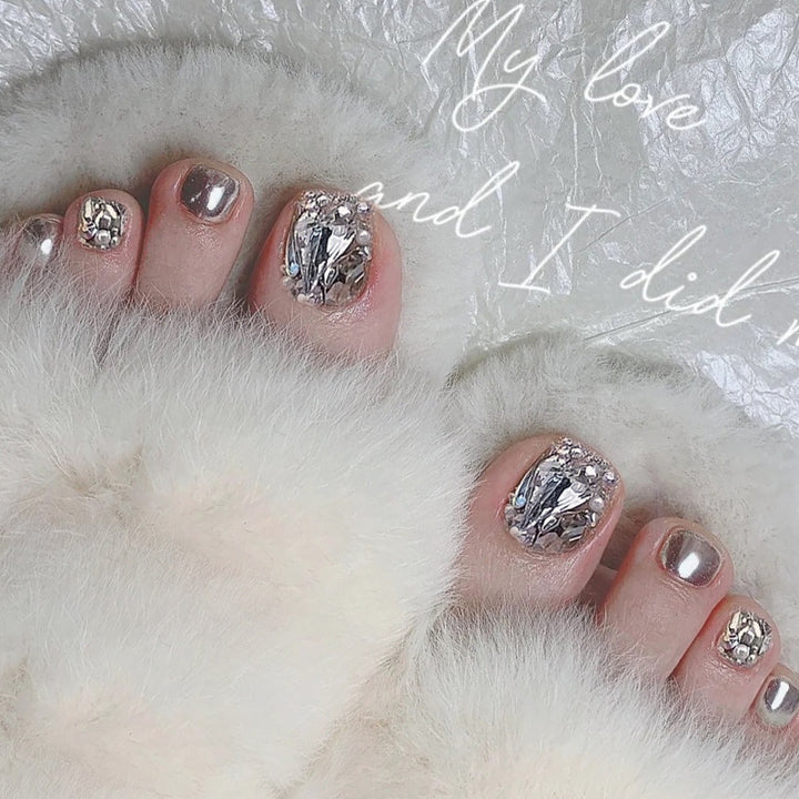 No.148 Silver Shiny Diamond Stickers Toenails 24pcs/Set