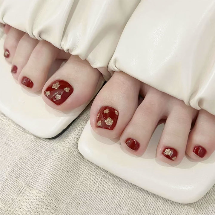 No.198 Sweet Wine Red Glitter Toenails Patch 24pcs/Set