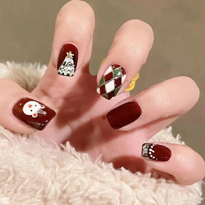 No.FP8 10pcs Christmas Red Handmade Press-On Fingernails