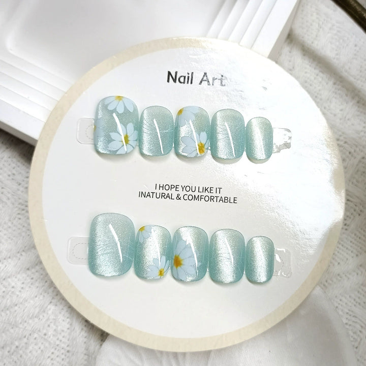 No.FP18 10pcs Light Green Cat's Eye Press-On Fingernails