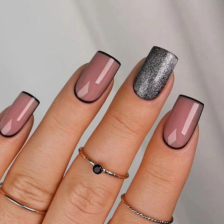 No.F377 Pink Glitter Fingernails Patch 24pcs/Set