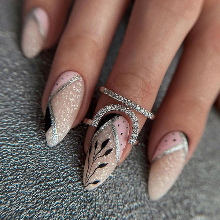 No.F97 Irregular Pearl Gold Edge Fingernails Patch 24pcs/Set
