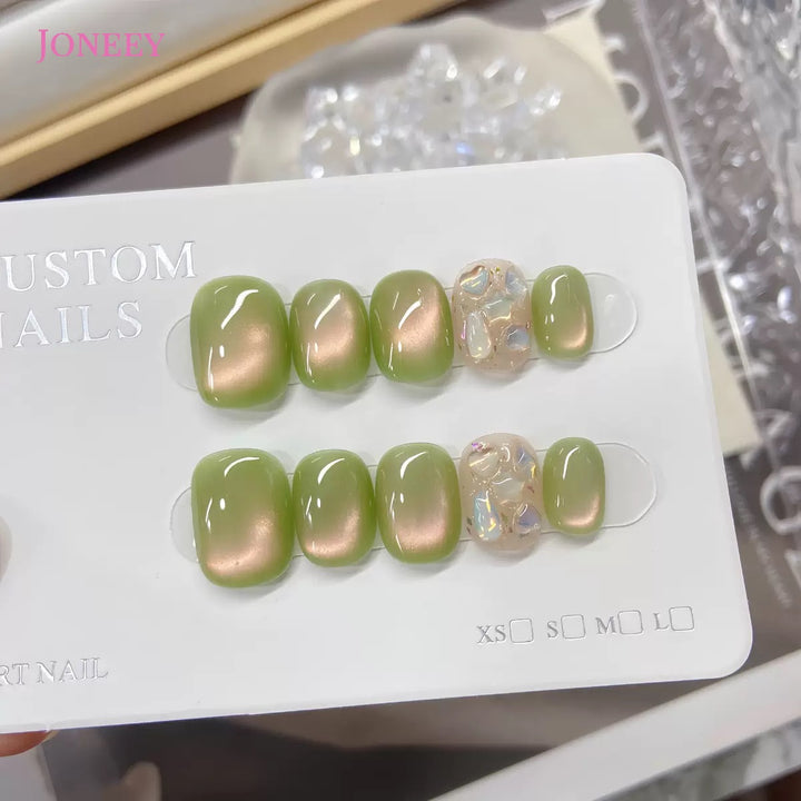 No.FP40 Pineapple Cat's Eye Hand Made Fingernails 10pcs