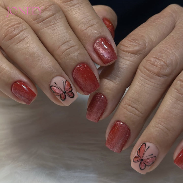No.FP42 Guava Cat's Eye Hand Made Fingernails 10pcs