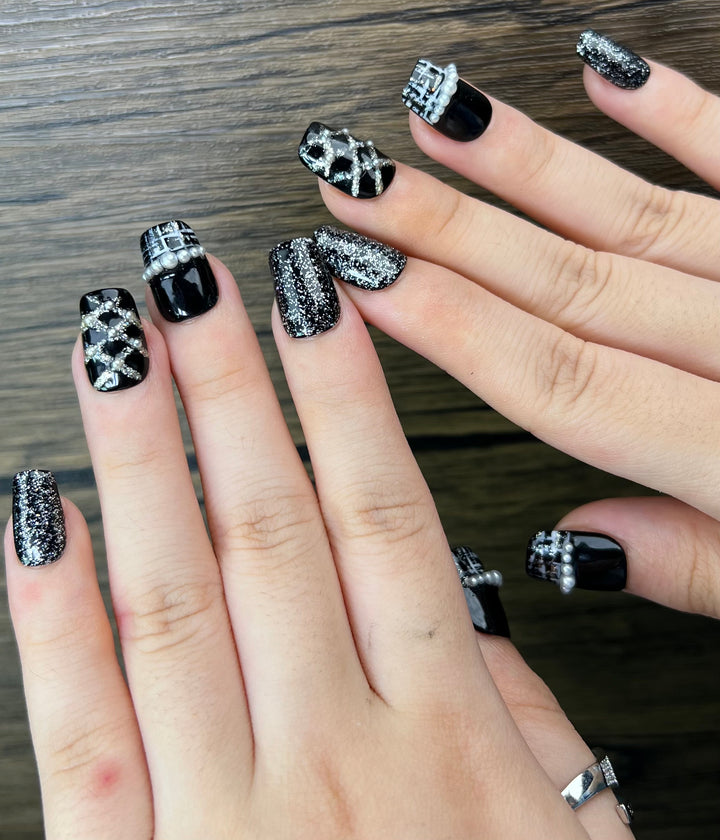 No.FP38 Black Hand Made Fingernails 10pcs