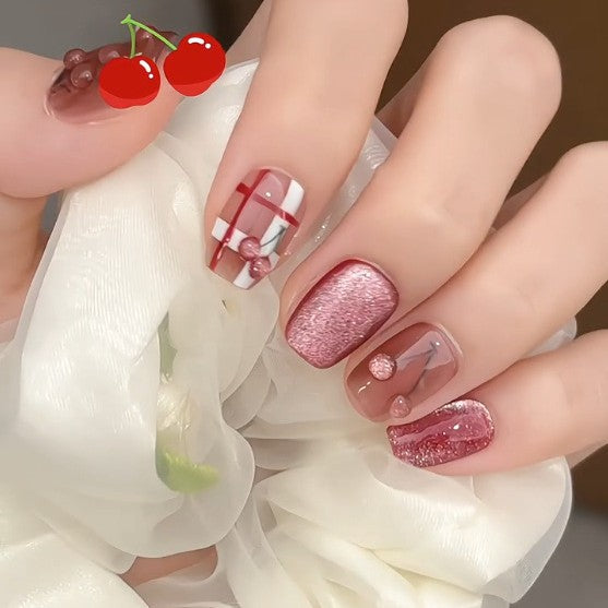 No.FP30 Cherry Cat's Eye Hand Made Fingernails 10pcs