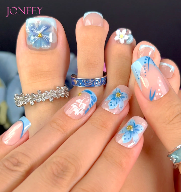 No.PSN163 Blue Flower Hand & Toe Pair Set-48pcs