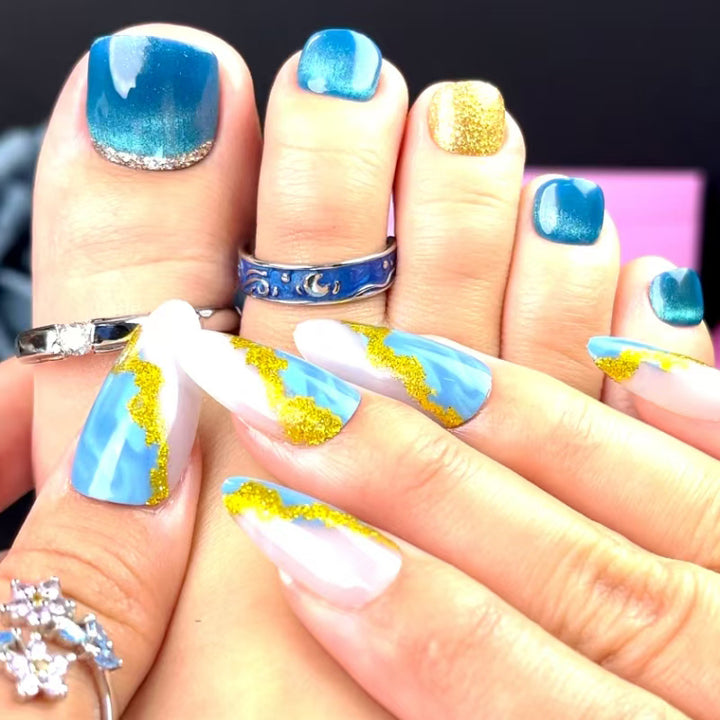 No.PSN161 Blue Cat's Eye Hand & Toe Pair Set-48pcs