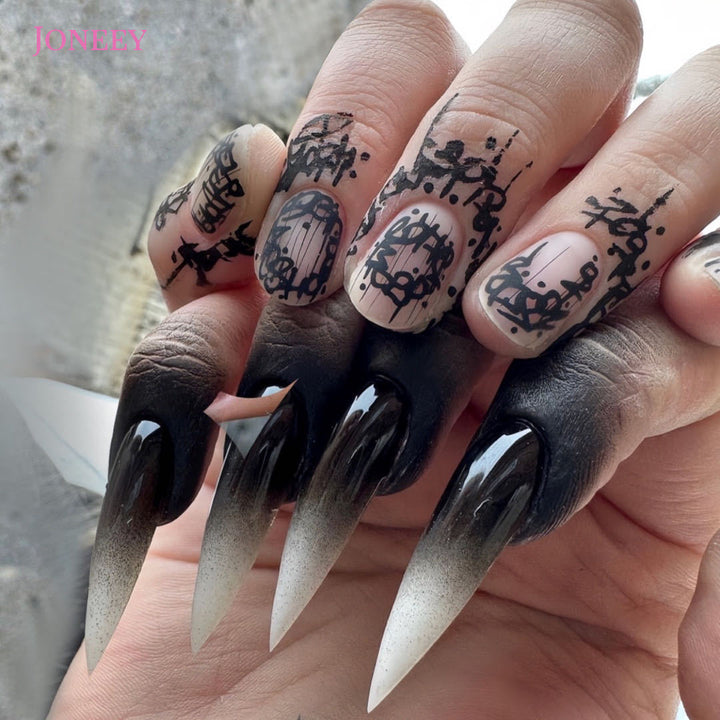 No.PSN129 Black Fingernails Pair Set-48pcs