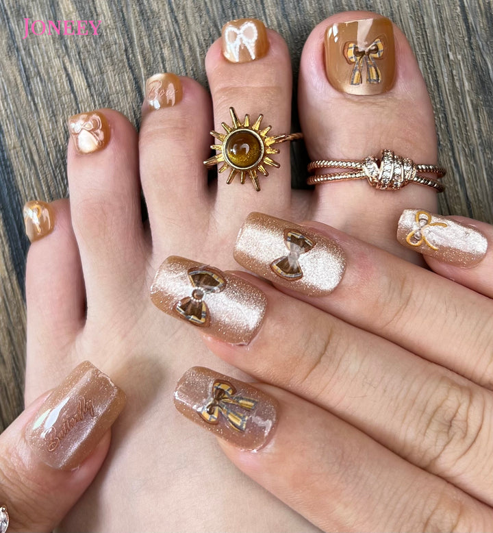 No.PSN124 Brown Bow Cat's Eye Hand & Toe Pair Set-48pcs