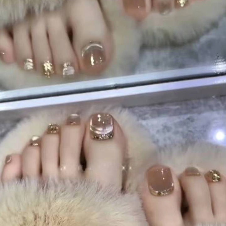 No.119 Coffee-colored Mirror Champagne Glitter Toenails 24pcs/Set