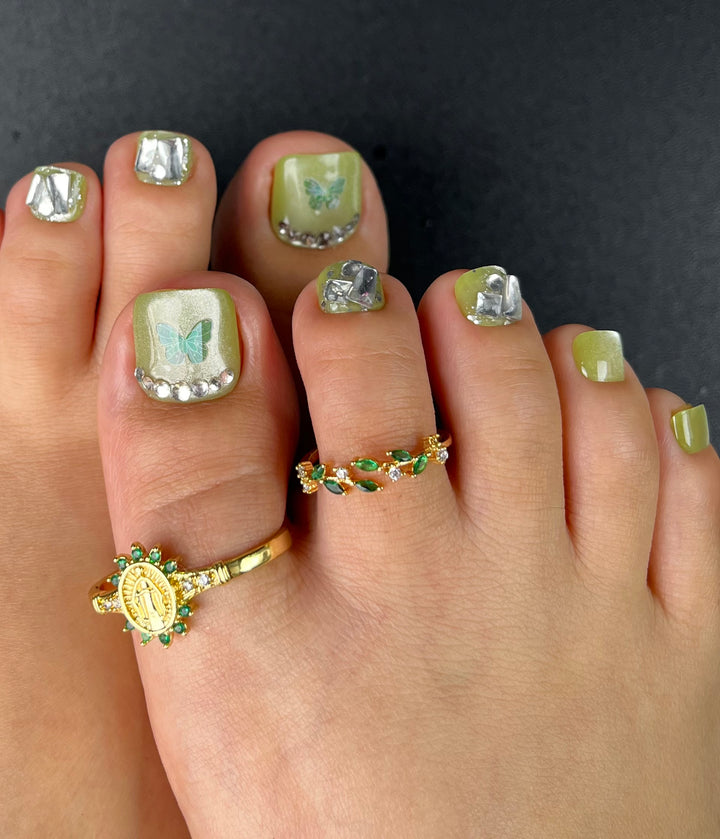 No.DT10 Green Butterfly Cat's Eye Toenails Patch 24pcs/Set