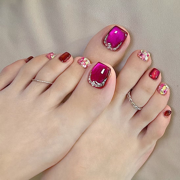 No.526 Rose Red Cat's Eye Toenails Patch 24pcs/Set