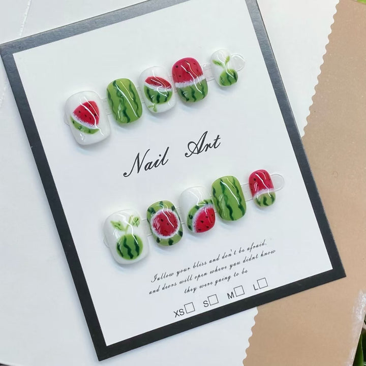 No.FP28 Watermelon Hand Made Fingernails 10pcs